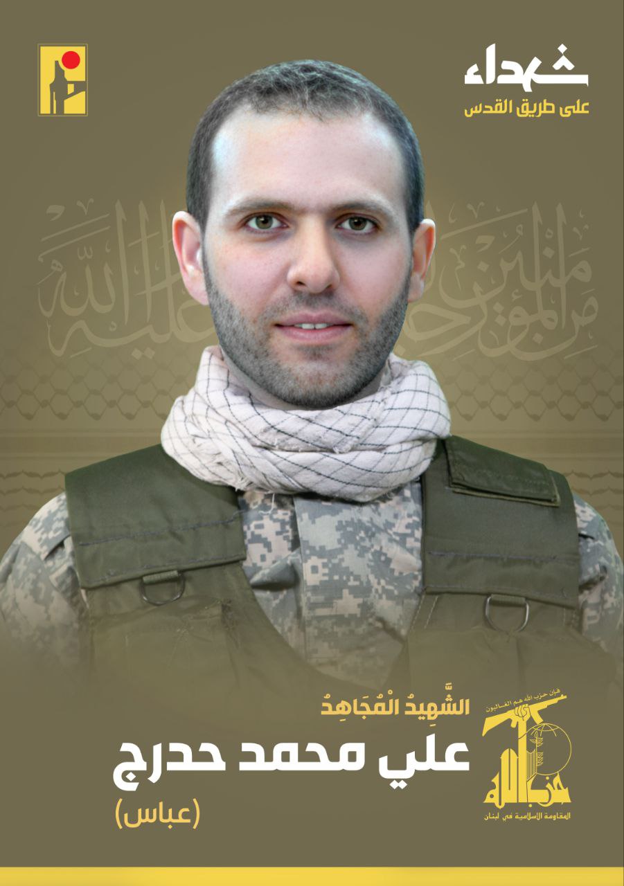 بمزيد من الفخر والإعتزاز، تزف المقاومة الإسلامية الشهيد المجاهد علي محمد حدرج "عباس" من بلدة البازورية في جنوب لبنان، والذي ارتقى شهيداً على طريق القدس.