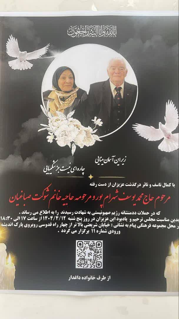 شهید حاج محمد یوسف شهرام پور شهیده حاجیه خانم شوکت صباغیان