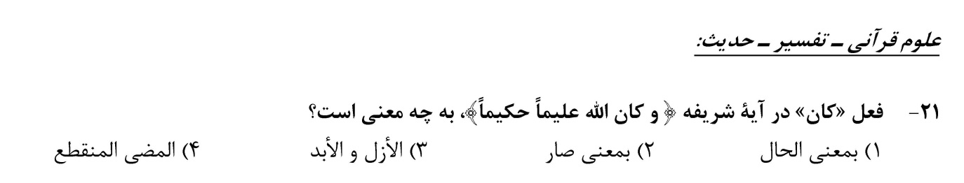 سوال 21 آزمون دکتری علوم قرآن و حدیث 1403 الهیات و معارف اسلامی (سوال اول تخصصی)