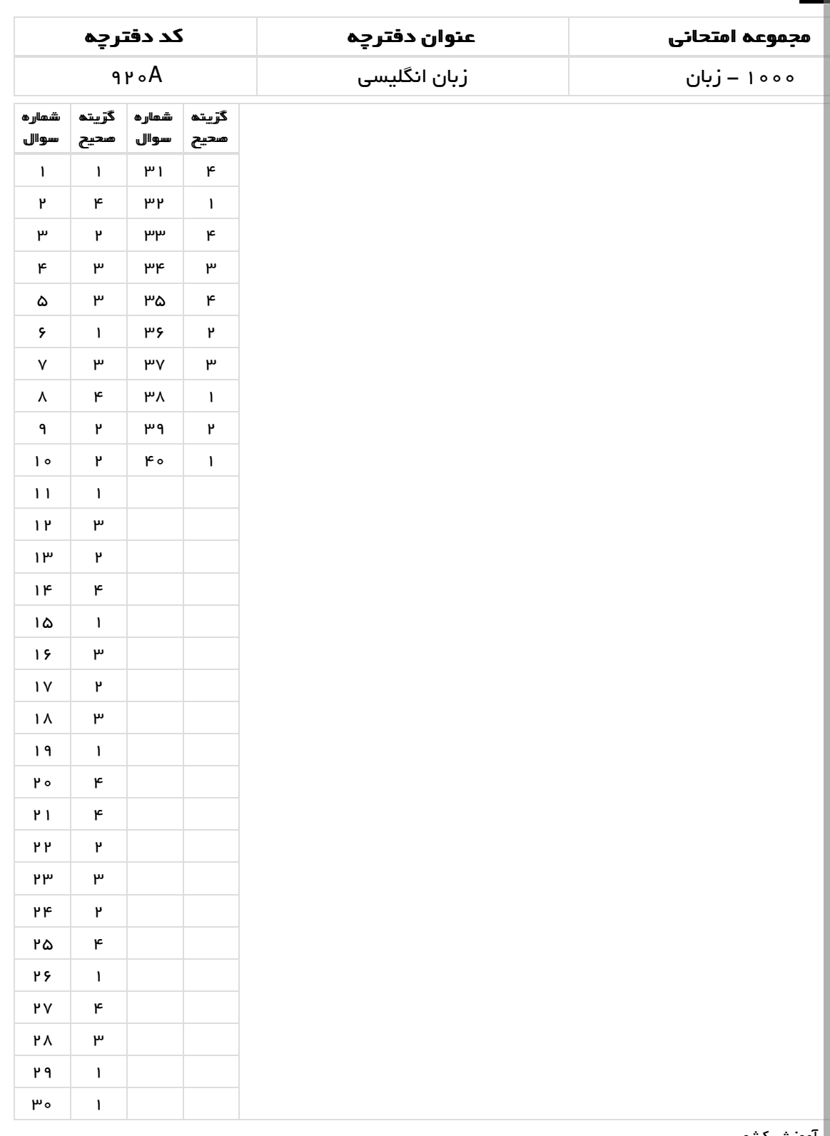 پاسخنامه و کلید آزمون به سامانه نتایج آزمون دکتری