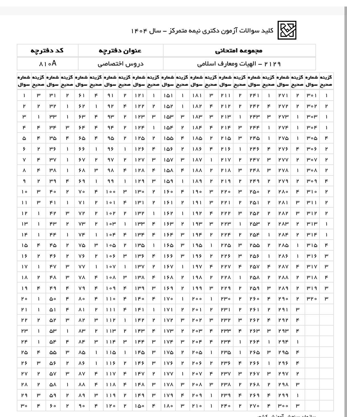 پاسخنامه و کلید آزمون به سامانه نتایج آزمون دکتری 1404
