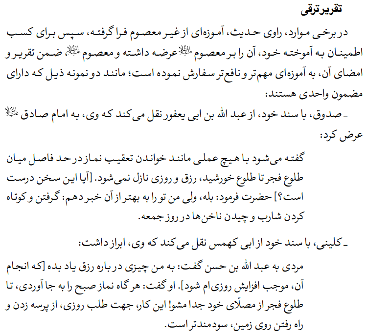 با عنوان: تحلیل و تعریفی نو از تقریر بر اساس روایات آن