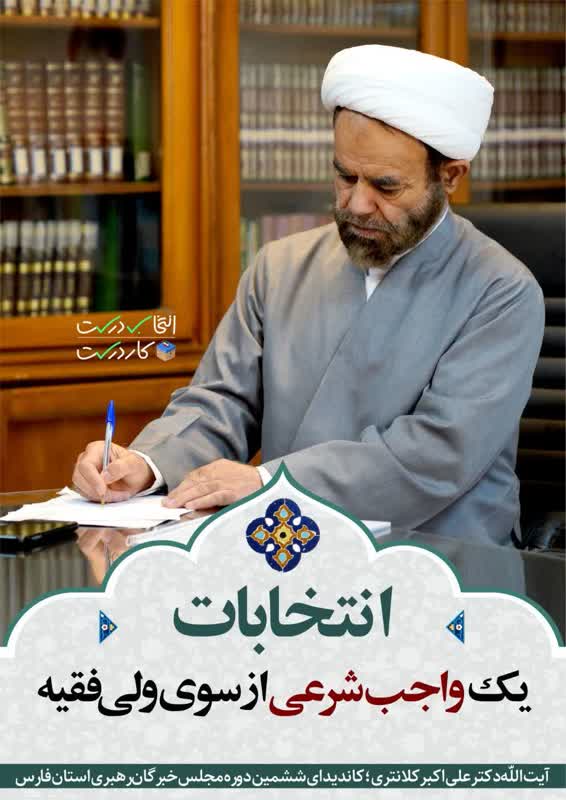 نامزد شـشمین دوره مجلس خبرگان رهبری اسـتان فـارس آیت اللّٰه دکتر علی اکبر کلانتری
