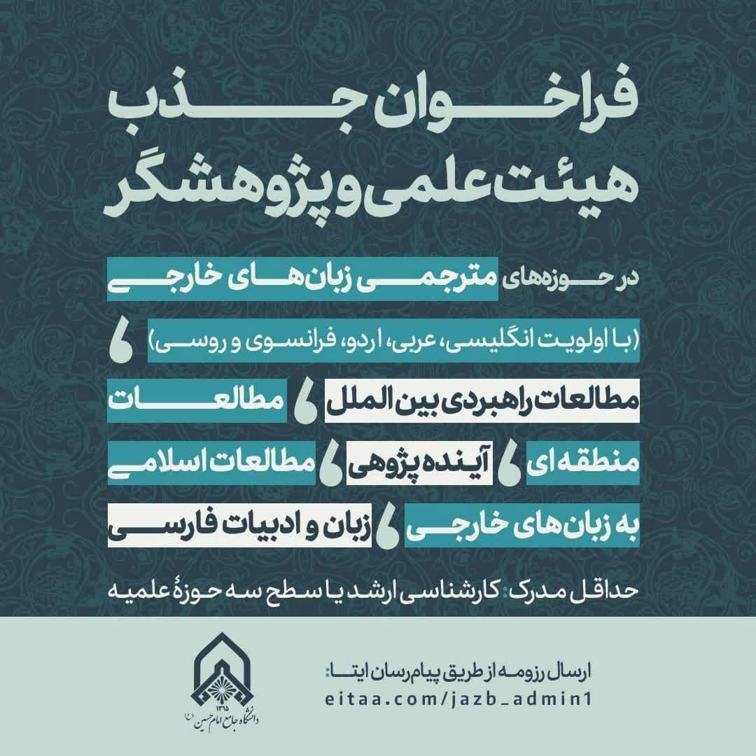 فراخوان جذب هیئت علمی و پژوهشگر دانشگاه جامع امام حسین علیه السلام