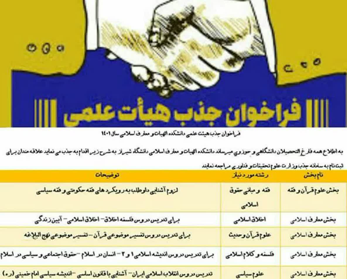فراخوان جذب هیأت علمی دانشکده الهیات دانشگاه شیراز